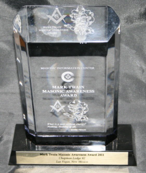 one of just 18 national Mark Twain Awards for demonstrating excellence in 2011 Masonic activities.